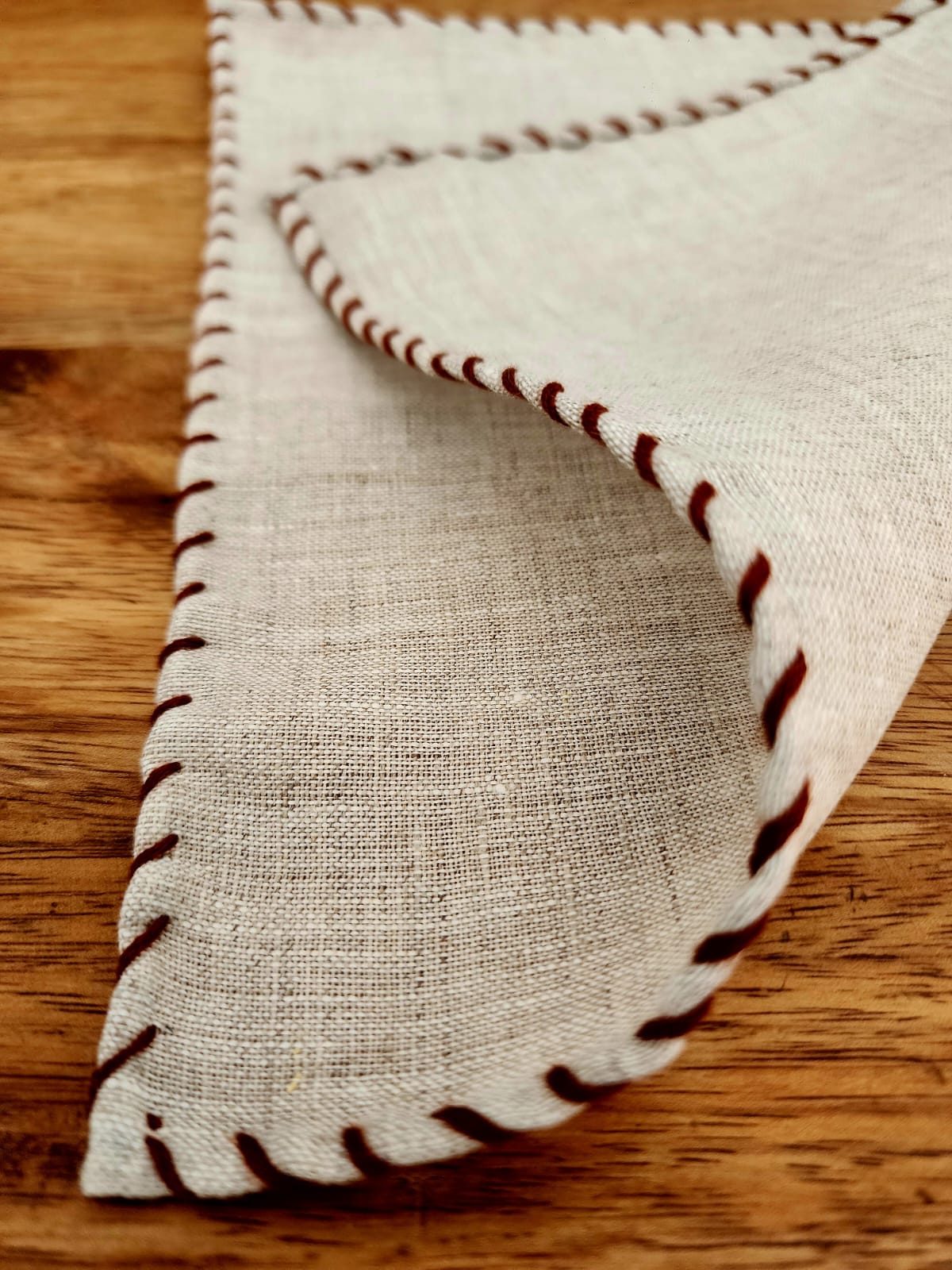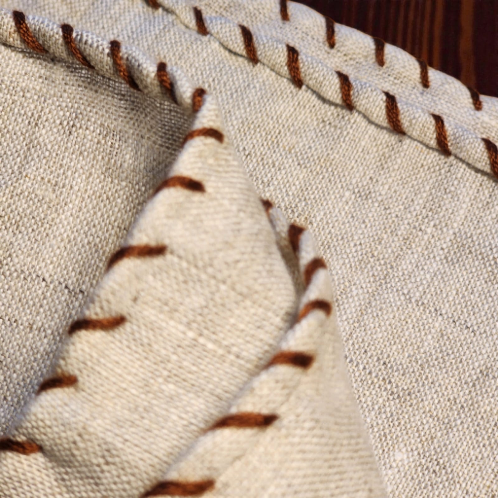 Cream-toned Irish linen paired with a rich brown edge—smooth, warm, and understated like the first pour of a perfect morning brew.