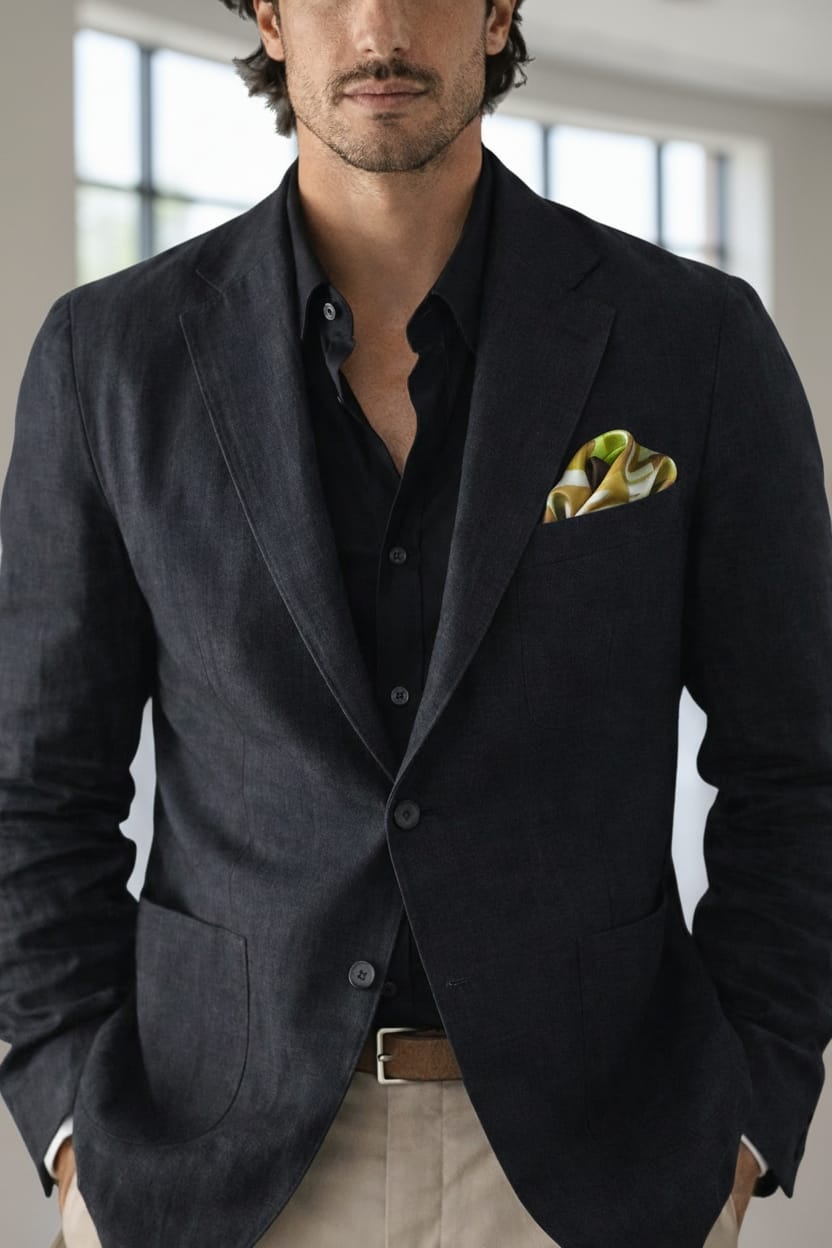 The Confident Explorer set pairs light champagne silk with the bold character of Forest Mosaic, finished with hand-rolled edges. Created for the man who embraces individuality and adventure, this set adds depth, texture, and distinction to his style.